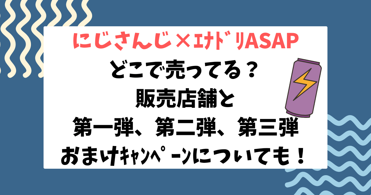 人気VTuberにじさんじのライバー9名の書下ろし缶コラボASAPが2024年4月16日に発売します。コラボ企画は第三弾まであれ、それぞれ発表が楽しみですね。随時追記していきます。